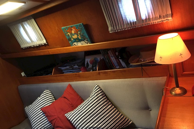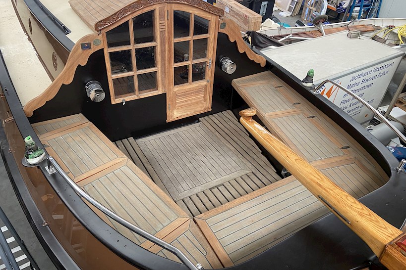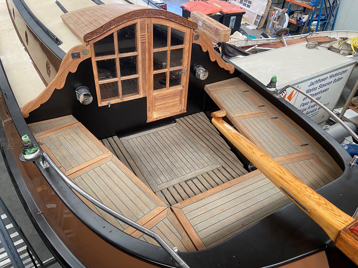 Het interieur is traditioneel uitgevoerd en straalt warmte en ambacht uit. Prachtig houtwerk, degelijke afwerking en een doordachte indeling zorgen voor een prettige sfeer aan boord.